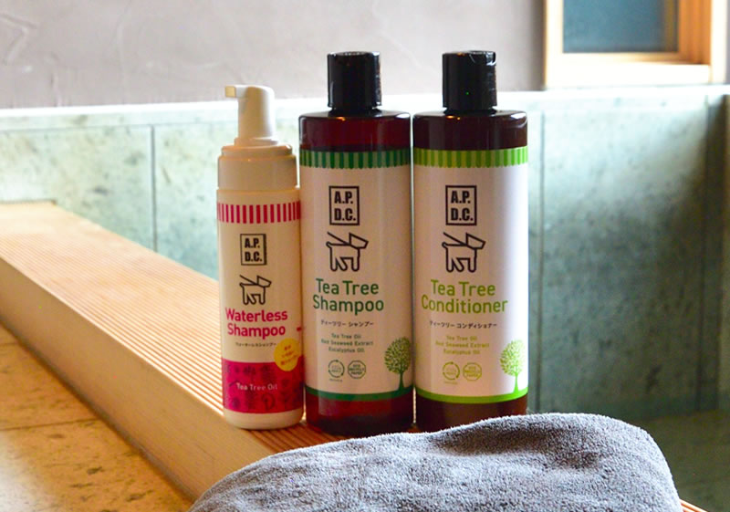 お散歩後は愛犬用のシャンプー、リンスをご用意しております。